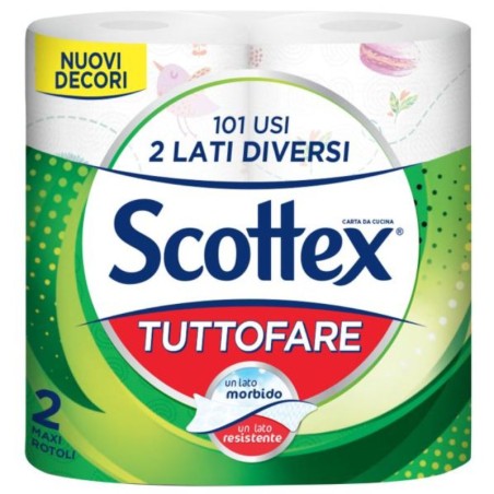 Scottex Tuttofare è studiato per offrire un'eccezionale versatilità grazie ai due veli diversi: uno morbido e gradevolmente decorato per gli usi più delicati e per abbellire la tua cucina; l'altro dalla speciale trama resistente, per i lavori più impegnativi. Asciugare, sfregare, lucidare, assorbire, pulire...