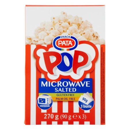Preparato a base di mais per pop corn a microonde. La soluzione con tre pratiche buste da 90g per avere pop corn appena sfornati in ogni momento. Sempre con la grande qualità di Pata.